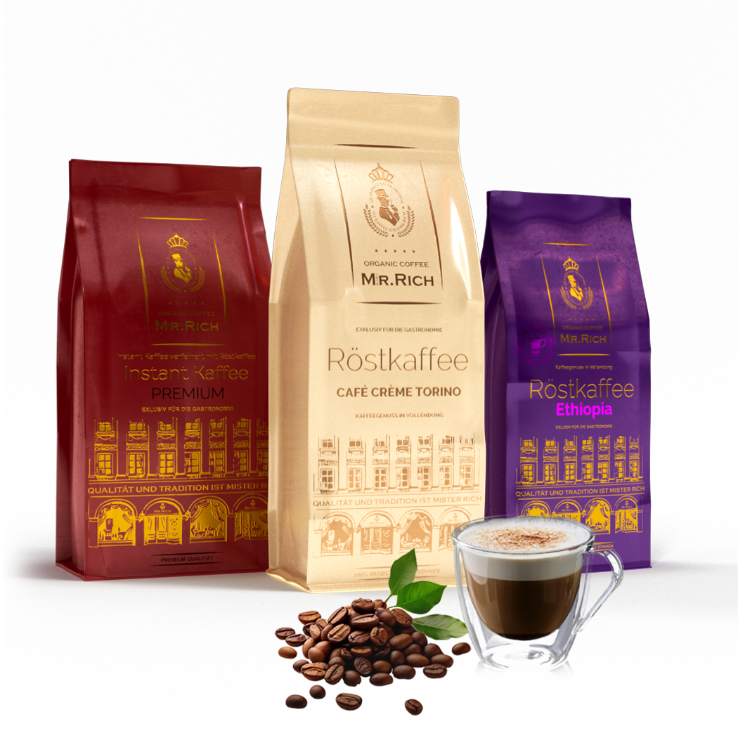 Mister Rich ist mehr als nur Kaffee. Es sind Tradition, Handwerkskunst und Leidenschaft, die in jeder Tasse zum Ausdruck kommen. Wir wählen sorgfältig die besten Kaffeebohnen von Plantagen in Mittel- und Südamerika, Afrika und Asien aus, um Ihnen den wahren Genuss erstklassigen Geschmacks zu bieten. Unsere Marke basiert auf den Werten Qualität und Exklusivität. Wir sind stolz darauf, die Traditionen des Röstens und Zubereitens von Kaffee zu bewahren und die Geheimnisse des Handwerks von Generation zu Generation weiterzugeben. Jede Mister Rich-Mischung offenbart ihre einzigartige Geschichte, egal ob es sich um einen reichhaltigen und aromatischen Espresso oder einen sanften und ausgewogenen Latte handelt. Mister Rich ist die Wahl für alle, die makellose Qualität schätzen und Perfektion in jedem Detail anstreben. Wir laden Sie ein, die Welt erlesenen Kaffees zu entdecken und die Liebe zu echtem, erstklassigem Geschmack mit uns zu teilen.